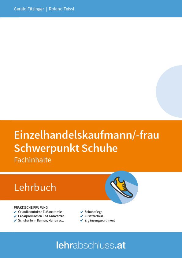 Dieses Lehrbuch (Vollfarbdruck, A4) deckt alle fachbezogenen Inhalte in Bezug auf die Warenkunde von Schuhen ab, welche für diesen Lehrabschluss geprüft werden.